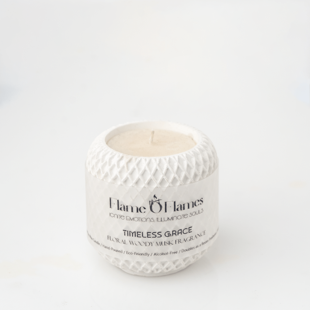 Elysian Aura – Timeless Grace Vessel Candle embodies sophistication, purity, and lasting charm. Handcrafted with care and designed for those who find beauty in simplicity, this candle is an expression of calm luxury. The pristine white vessel, with its smooth concrete texture, captures the essence of minimal elegance — a perfect fit for any serene space or refined décor.