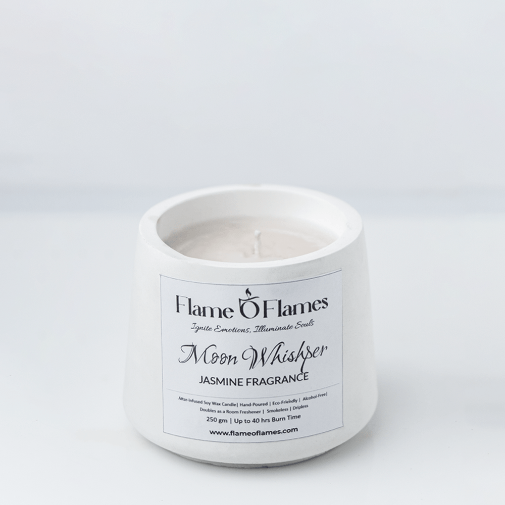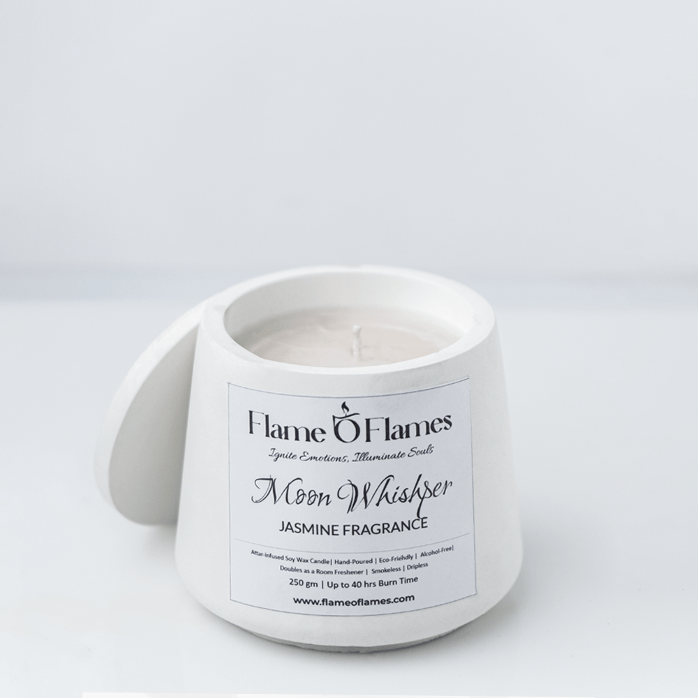 The Eternal Blossom – Jasmine Attar Concrete Candle is a tribute to elegance, purity, and timeless fragrance. Crafted by hand with natural soy wax and infused with the deep, intoxicating scent of authentic jasmine attar, this candle transforms your home into a haven of calm and sophistication. Each vessel is cast in minimalist white concrete, a symbol of strength and purity, giving it both visual appeal and durability.