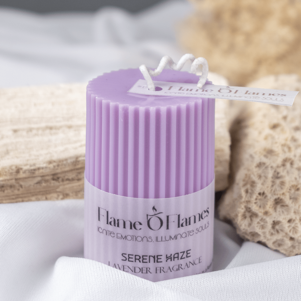 Crafted with precision, each candle is 3 x 6 inches in size and features a graceful vertical zigzag pillar design in a soft lavender color. The tranquil hue mirrors the peaceful aura of lavender fields, making it a beautiful addition to any décor setting—bedrooms, living rooms, or personal sanctuaries.