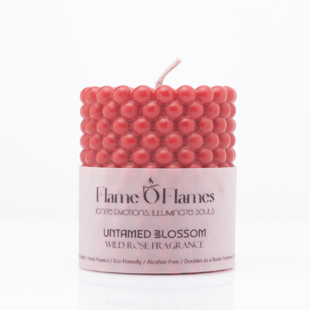 Untamed Blossom – Wild Rose Fragrance Attar Pillar Candle (Bubble Pattern)